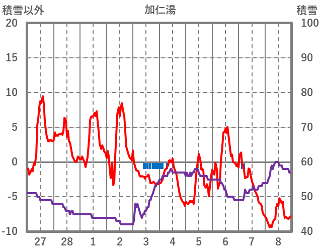 | 日 | 時 | 気温 | 降水 | 風向/風速 | 日照 | 積雪 | 降雪 |