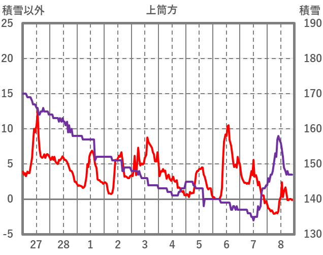 | 日 | 時 | 気温 | 降水 | 風向/風速 | 日照 | 積雪 | 降雪 |