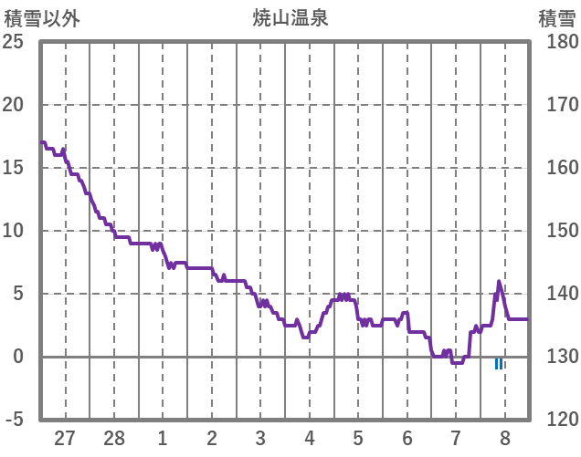 | 日 | 時 | 気温 | 降水 | 風向/風速 | 日照 | 積雪 | 降雪 |