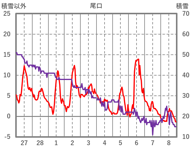 | 日 | 時 | 気温 | 降水 | 風向/風速 | 日照 | 積雪 | 降雪 |