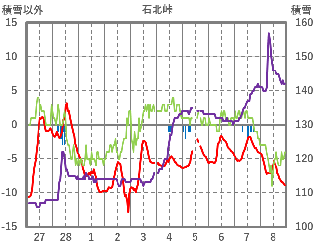 | 日 | 時 | 気温 | 降水 | 風向/風速 | 日照 | 積雪 | 降雪 |