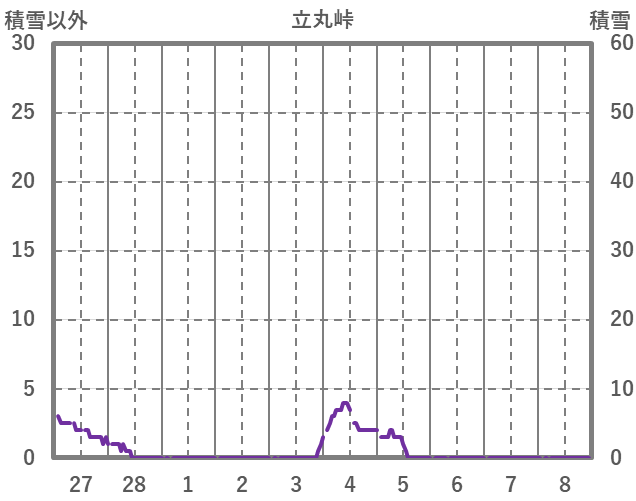 | 日 | 時 | 気温 | 降水 | 風向/風速 | 日照 | 積雪 | 降雪 |