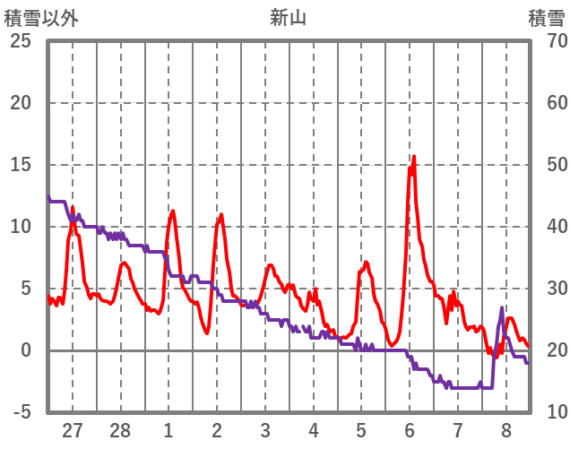 | 日 | 時 | 気温 | 降水 | 風向/風速 | 日照 | 積雪 | 降雪 |