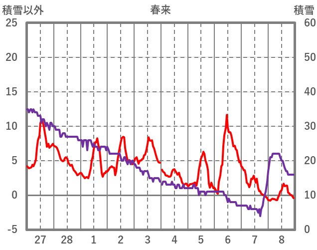 | 日 | 時 | 気温 | 降水 | 風向/風速 | 日照 | 積雪 | 降雪 |