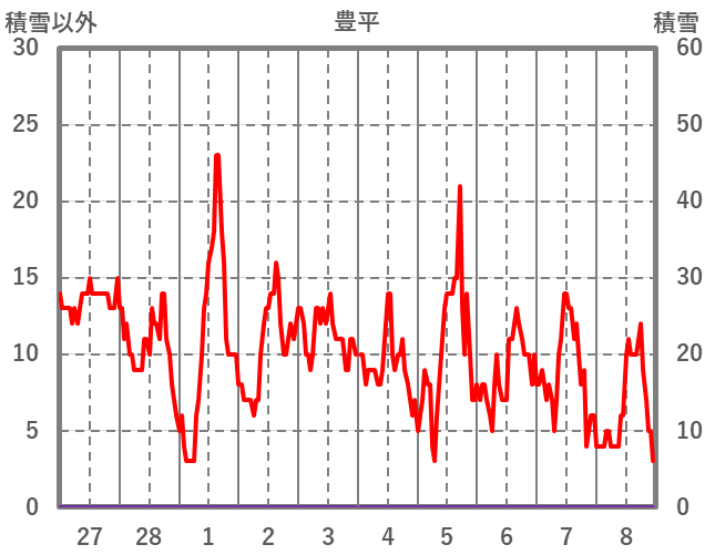| 日 | 時 | 気温 | 降水 | 風向/風速 | 日照 | 積雪 | 降雪 |