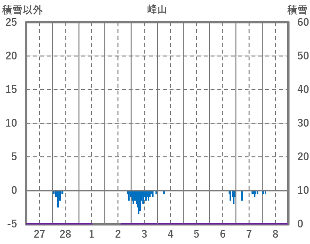 | 日 | 時 | 気温 | 降水 | 風向/風速 | 日照 | 積雪 | 降雪 |