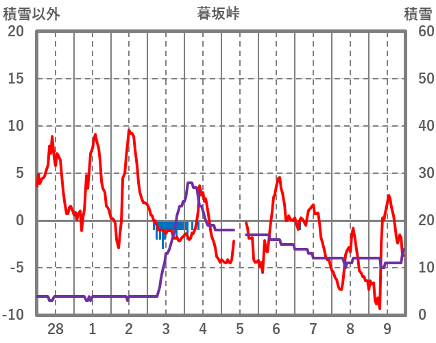 | 日 | 時 | 気温 | 降水 | 風向/風速 | 日照 | 積雪 | 降雪 |