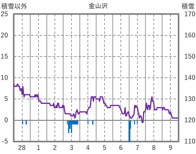 | 日 | 時 | 気温 | 降水 | 風向/風速 | 日照 | 積雪 | 降雪 |