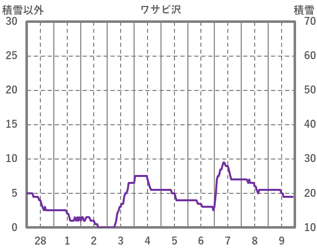 | 日 | 時 | 気温 | 降水 | 風向/風速 | 日照 | 積雪 | 降雪 |