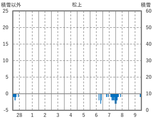 | 日 | 時 | 気温 | 降水 | 風向/風速 | 日照 | 積雪 | 降雪 |