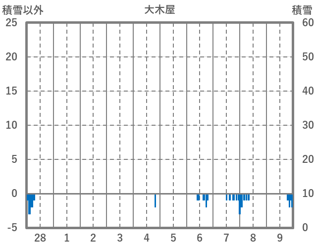 | 日 | 時 | 気温 | 降水 | 風向/風速 | 日照 | 積雪 | 降雪 |