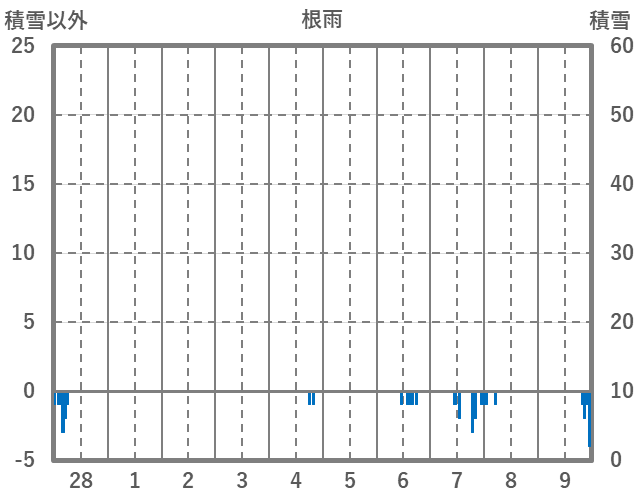 | 日 | 時 | 気温 | 降水 | 風向/風速 | 日照 | 積雪 | 降雪 |