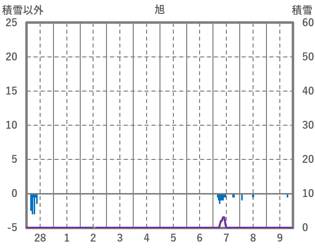 | 日 | 時 | 気温 | 降水 | 風向/風速 | 日照 | 積雪 | 降雪 |