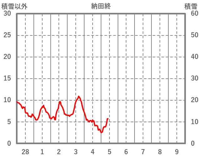 | 日 | 時 | 気温 | 降水 | 風向/風速 | 日照 | 積雪 | 降雪 |