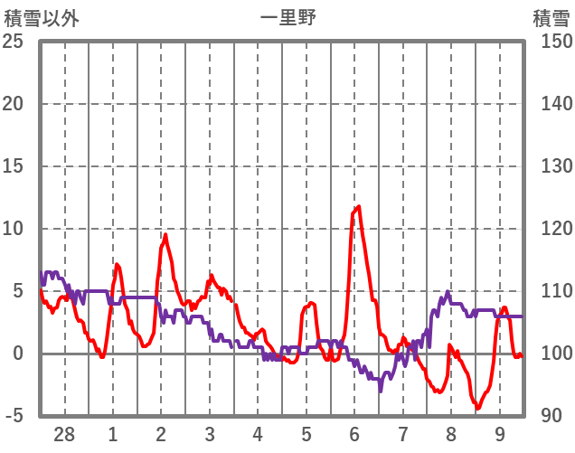 | 日 | 時 | 気温 | 降水 | 風向/風速 | 日照 | 積雪 | 降雪 |