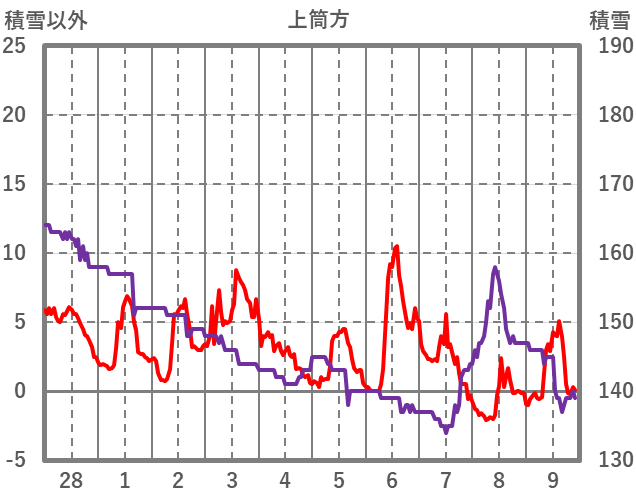 | 日 | 時 | 気温 | 降水 | 風向/風速 | 日照 | 積雪 | 降雪 |