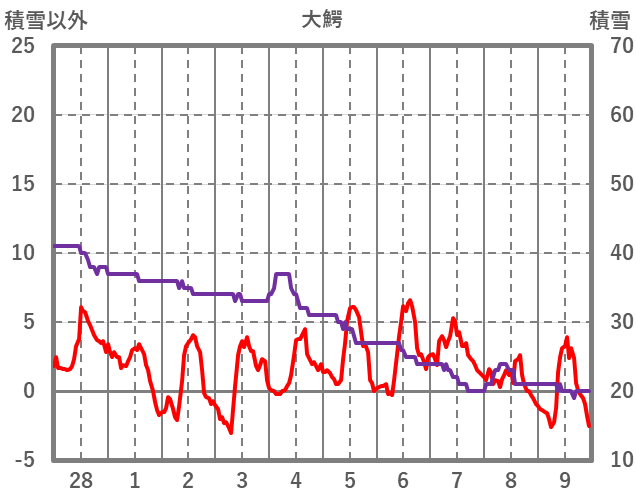 | 日 | 時 | 気温 | 降水 | 風向/風速 | 日照 | 積雪 | 降雪 |