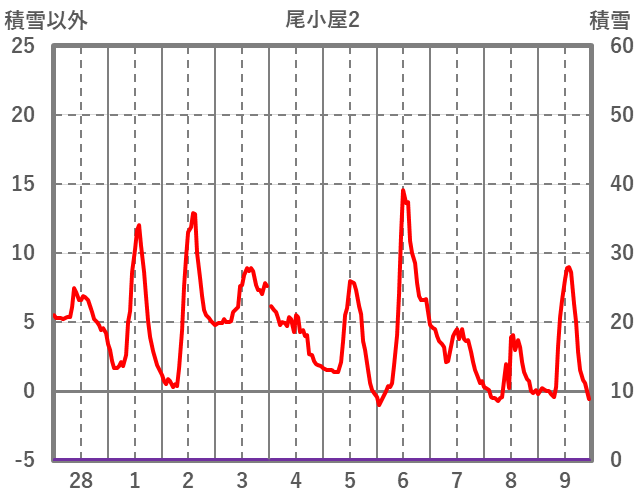 | 日 | 時 | 気温 | 降水 | 風向/風速 | 日照 | 積雪 | 降雪 |