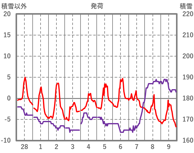 | 日 | 時 | 気温 | 降水 | 風向/風速 | 日照 | 積雪 | 降雪 |