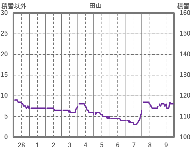 | 日 | 時 | 気温 | 降水 | 風向/風速 | 日照 | 積雪 | 降雪 |
