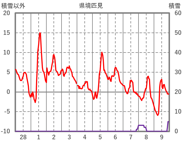 | 日 | 時 | 気温 | 降水 | 風向/風速 | 日照 | 積雪 | 降雪 |