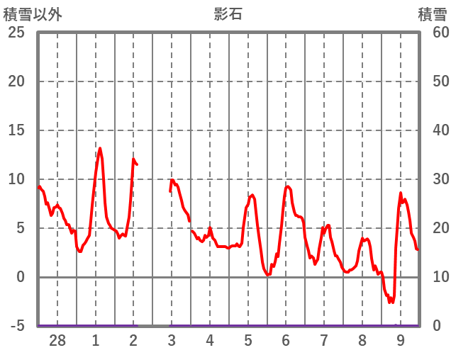 | 日 | 時 | 気温 | 降水 | 風向/風速 | 日照 | 積雪 | 降雪 |