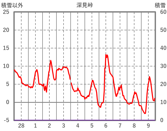 | 日 | 時 | 気温 | 降水 | 風向/風速 | 日照 | 積雪 | 降雪 |