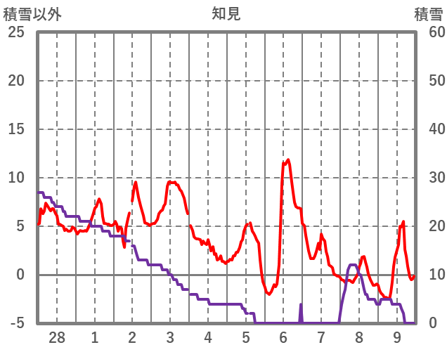 | 日 | 時 | 気温 | 降水 | 風向/風速 | 日照 | 積雪 | 降雪 |