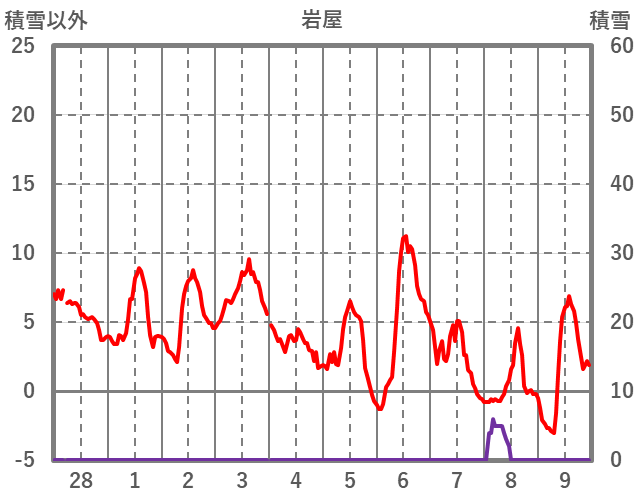 | 日 | 時 | 気温 | 降水 | 風向/風速 | 日照 | 積雪 | 降雪 |