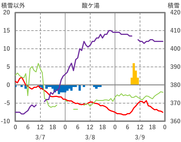 | 日 | 時 | 気温 | 降水 | 風向/風速 | 日照 | 積雪 | 降雪 |