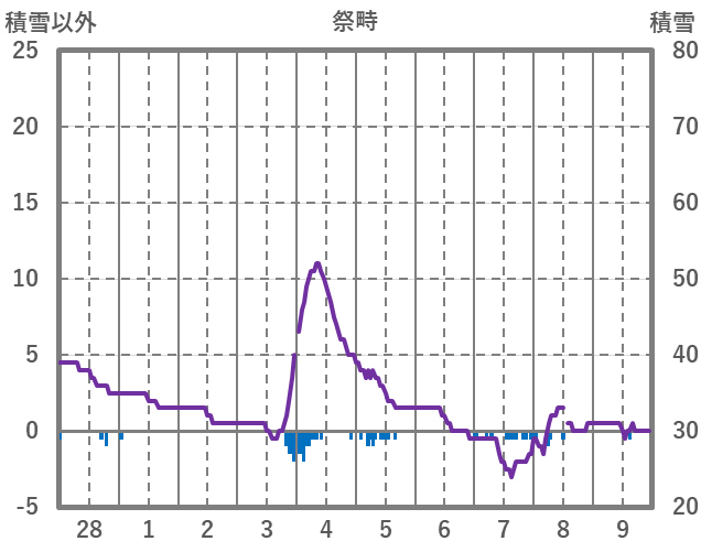 | 日 | 時 | 気温 | 降水 | 風向/風速 | 日照 | 積雪 | 降雪 |
