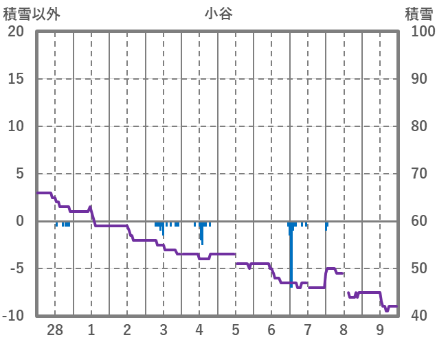 | 日 | 時 | 気温 | 降水 | 風向/風速 | 日照 | 積雪 | 降雪 |
