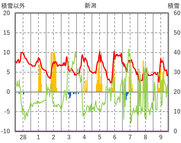 | 日 | 時 | 気温 | 降水 | 風向/風速 | 日照 | 積雪 | 降雪 |