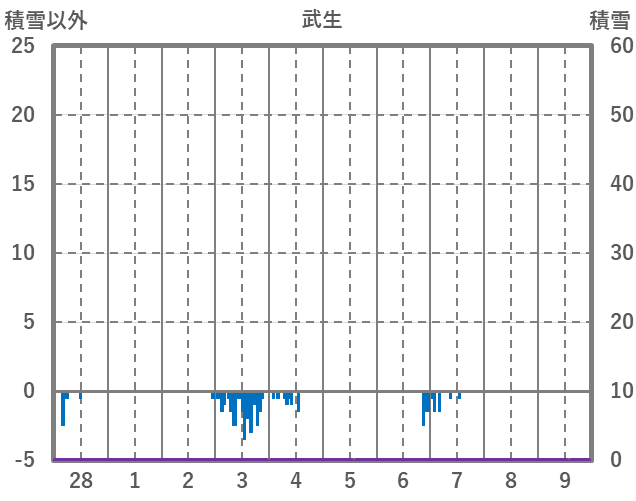 | 日 | 時 | 気温 | 降水 | 風向/風速 | 日照 | 積雪 | 降雪 |