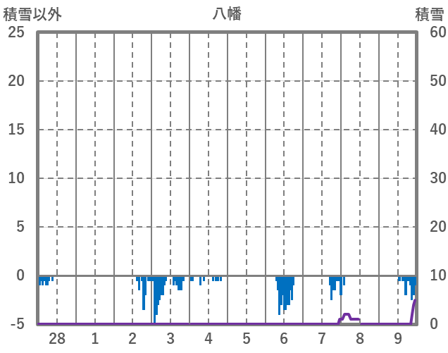 | 日 | 時 | 気温 | 降水 | 風向/風速 | 日照 | 積雪 | 降雪 |