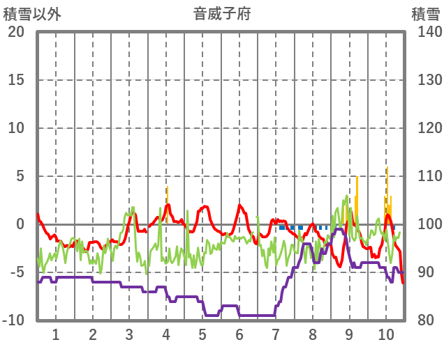 | 日 | 時 | 気温 | 降水 | 風向/風速 | 日照 | 積雪 | 降雪 |