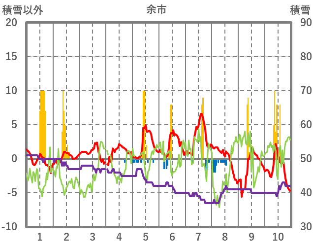 | 日 | 時 | 気温 | 降水 | 風向/風速 | 日照 | 積雪 | 降雪 |