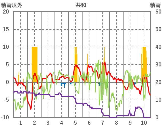 | 日 | 時 | 気温 | 降水 | 風向/風速 | 日照 | 積雪 | 降雪 |