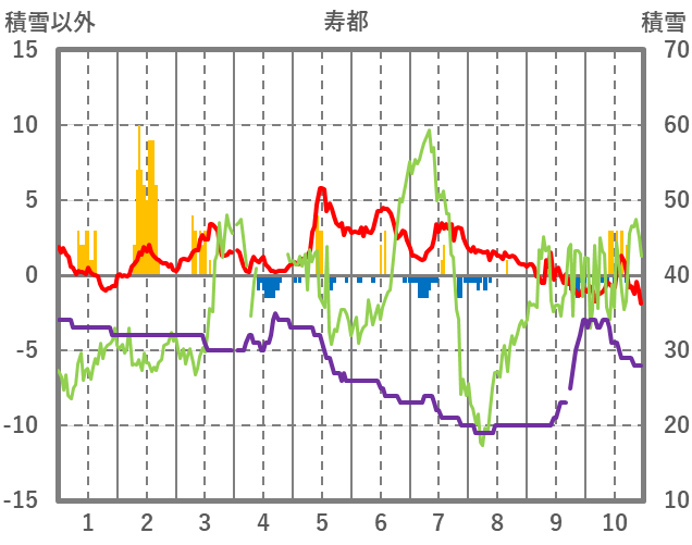 | 日 | 時 | 気温 | 降水 | 風向/風速 | 日照 | 積雪 | 降雪 |
