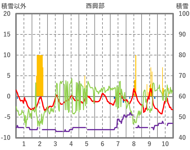 | 日 | 時 | 気温 | 降水 | 風向/風速 | 日照 | 積雪 | 降雪 |