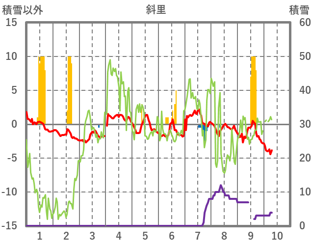 | 日 | 時 | 気温 | 降水 | 風向/風速 | 日照 | 積雪 | 降雪 |