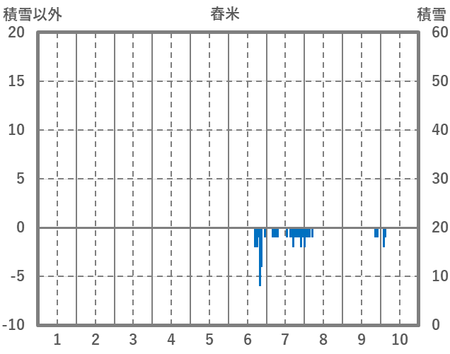 | 日 | 時 | 気温 | 降水 | 風向/風速 | 日照 | 積雪 | 降雪 |