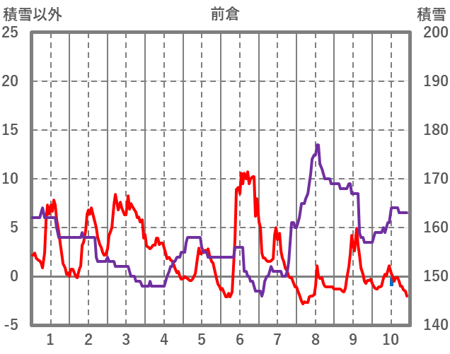 | 日 | 時 | 気温 | 降水 | 風向/風速 | 日照 | 積雪 | 降雪 |