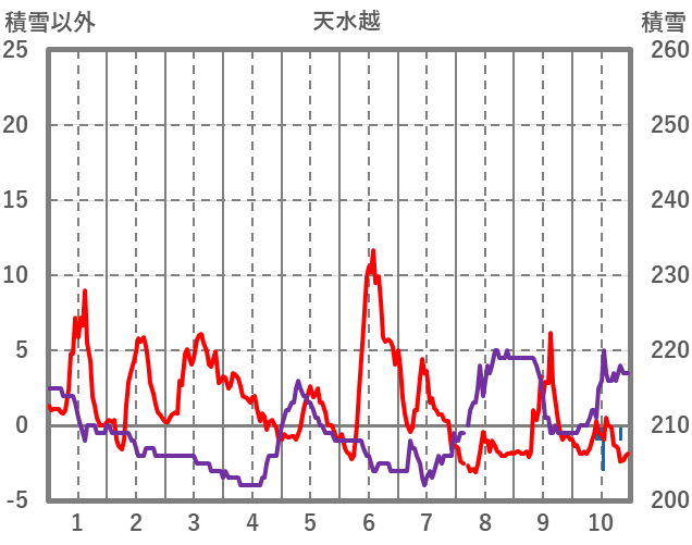 | 日 | 時 | 気温 | 降水 | 風向/風速 | 日照 | 積雪 | 降雪 |