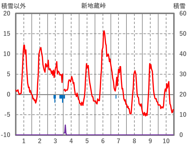 | 日 | 時 | 気温 | 降水 | 風向/風速 | 日照 | 積雪 | 降雪 |
