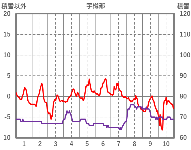 | 日 | 時 | 気温 | 降水 | 風向/風速 | 日照 | 積雪 | 降雪 |