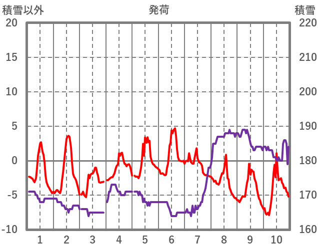 | 日 | 時 | 気温 | 降水 | 風向/風速 | 日照 | 積雪 | 降雪 |