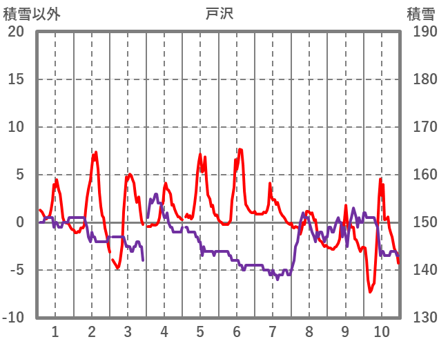 | 日 | 時 | 気温 | 降水 | 風向/風速 | 日照 | 積雪 | 降雪 |