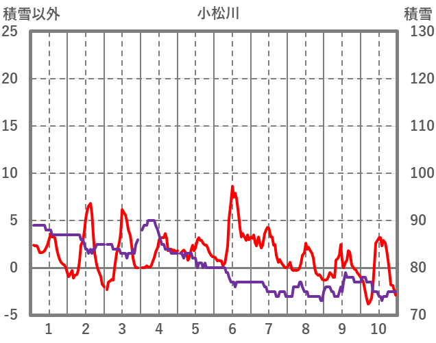 | 日 | 時 | 気温 | 降水 | 風向/風速 | 日照 | 積雪 | 降雪 |