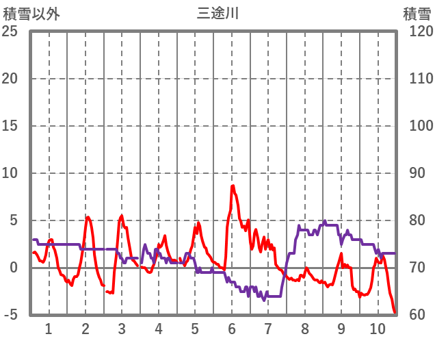 | 日 | 時 | 気温 | 降水 | 風向/風速 | 日照 | 積雪 | 降雪 |